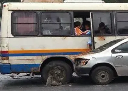 Acidente entre van escolar e ônibus em Guarulhos deixa crianças feridas.