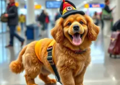 Cadela caramelo é resgatada e se torna a mascote oficial do aeroporto.